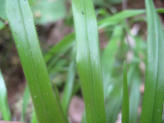 False brome leaf ← Previous A close-up shot of False brome leaves. Note that the leaves have small fibers that give them a fuzzy look.