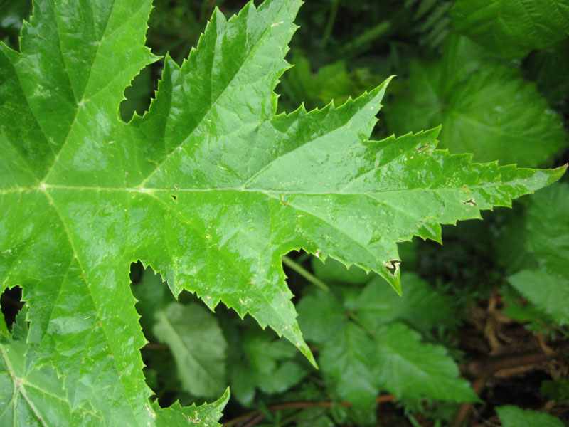 Giant hogweed leaf ← Previous Next → Giant hogweed leaves are also easy to tell by their size and shape, reaching 3 to 5 feet across in the pattern shown here.