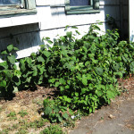 The main varieties of Knotweed are Japanese, Himalayan, giant and a hybrid of Japanese and giant called bohemian Knotweed. Himalayan knotweed grows up to 6 feet tall. Japanese knotweed can reach 12 feet tall and giant knotweed can grow up to 15 feet tall. Japanese knotweed is by far the most common type of knotweed in the Pacific Northwest. Knotweed has hollow stems with distinct raised nodes that give it a very similar appearance to bamboo, though they are not closely related. While large mature plants can grow tall each growing season, it is typical to see much smaller plants in the shade or when they’re young. The flowers are small, creamy white, blooming in late summer and early autumn. It is an herbaceous plant that dies back to the ground every winter, but comes back bigger and stronger the following summer.