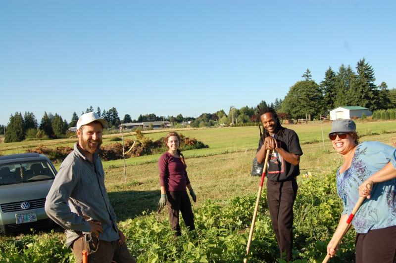 Participants of the Beginning Urban Farmer Apprenticeship program join in thistle-weeding festivities. Photo courtesy Rick Reddaway