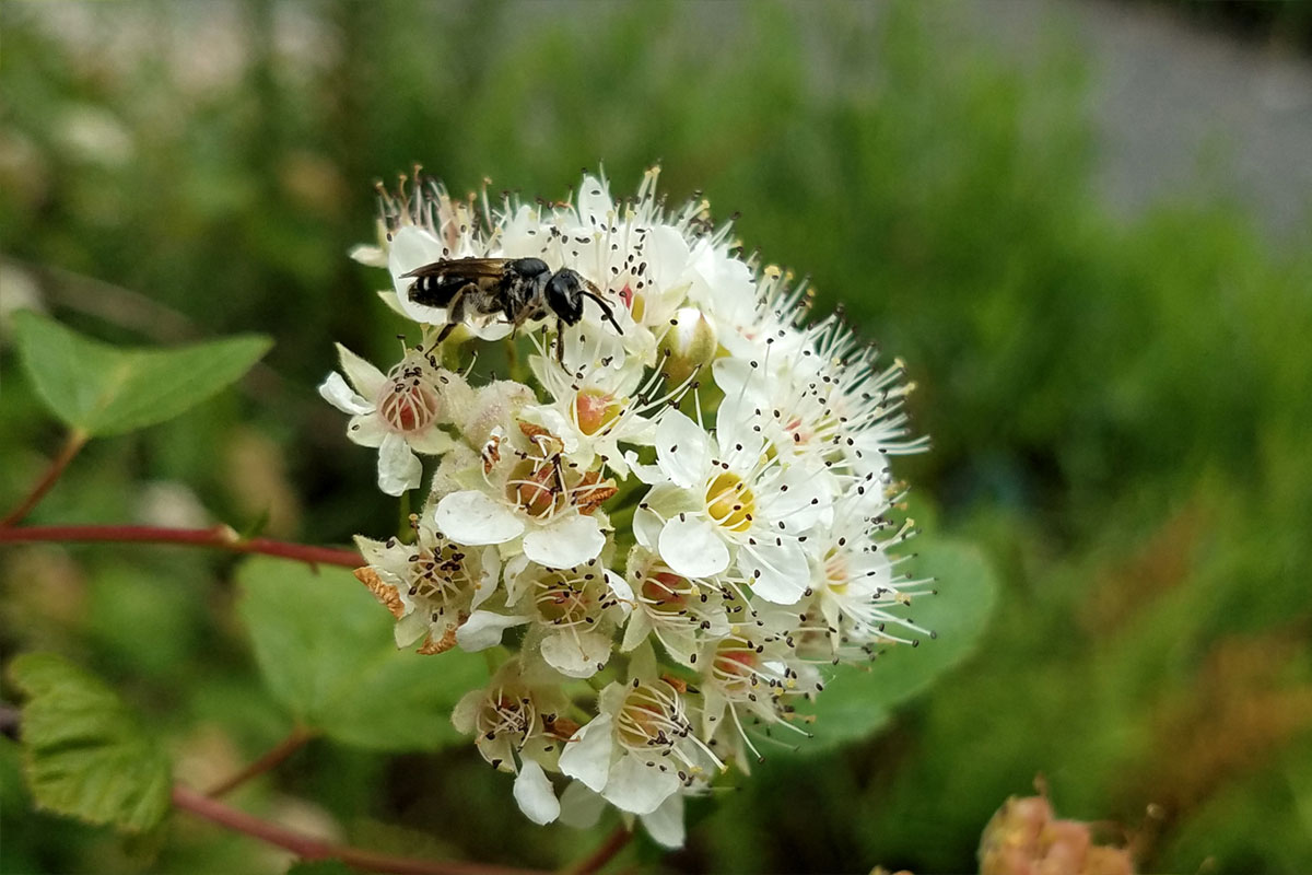 Pacific ninebark and a visiting pollinator